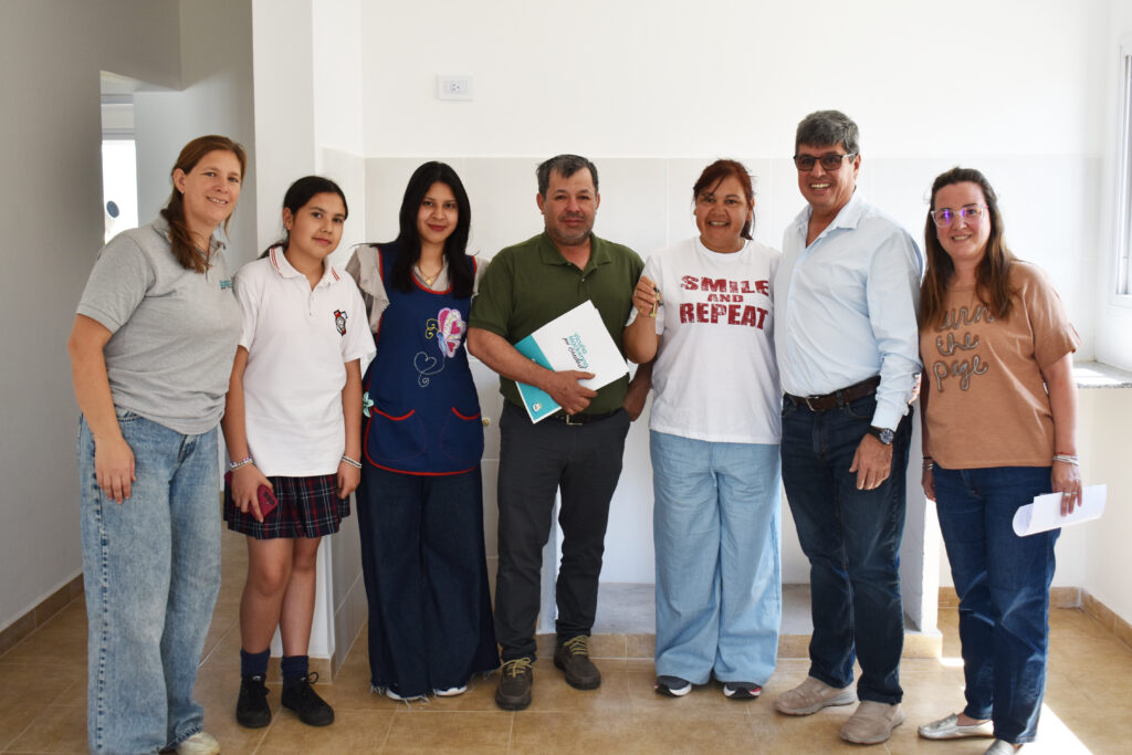 El Intendente Roberto Casari, acompañado por la Secretaria de Obras Públicas y Control de Obras Privadas, Arq. Luciana Campi, y la Arq. Julia Sánchez, hicieron entrega de las llaves al propietario Juan Carlos Miño.
